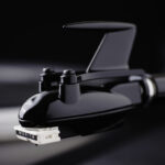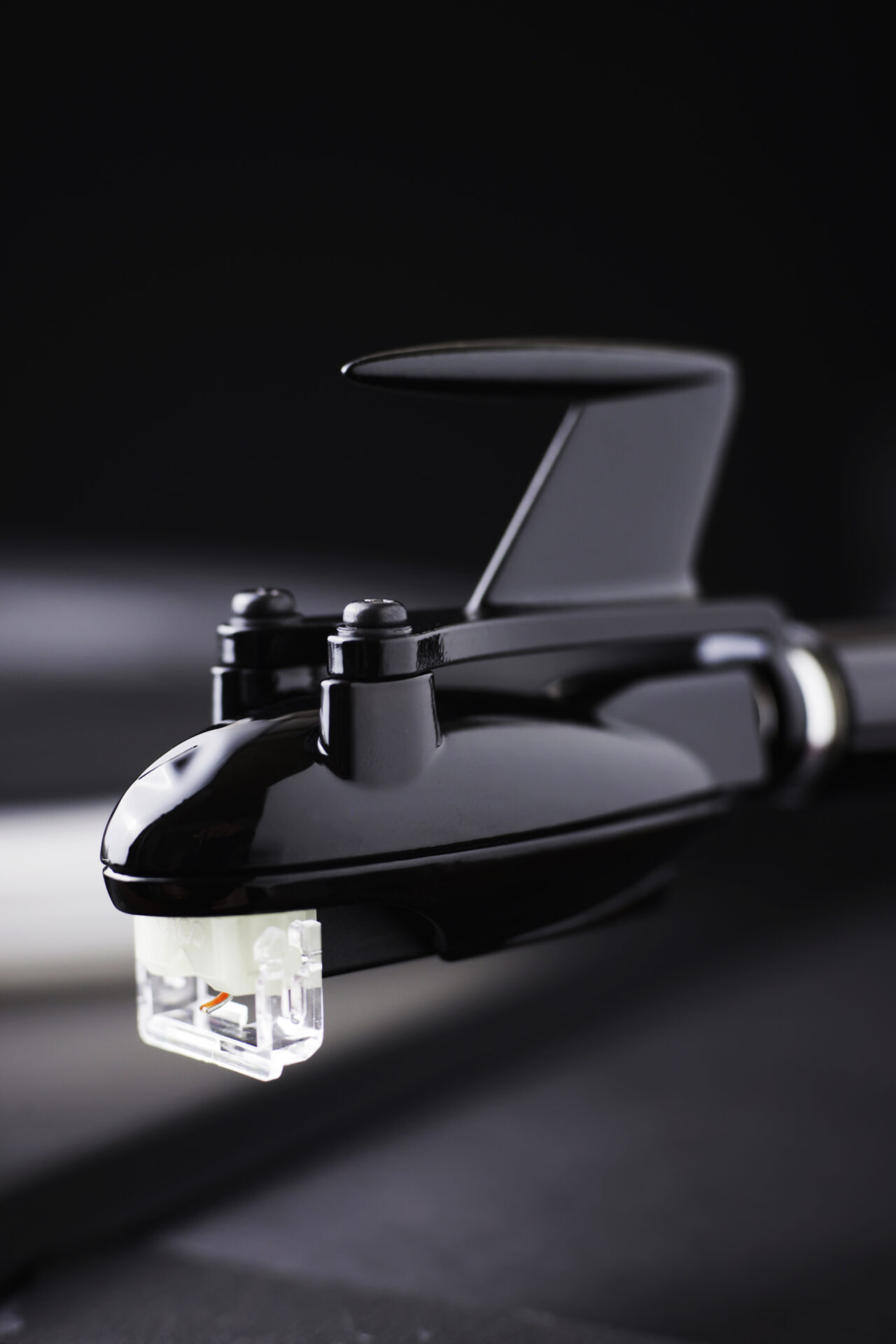 ヘッドシェルの指掛けは、外側(側面)にあるのが一般的です。しかし、それはあくまで人間の都合であってカートリッジの重心、バランスを考えれば、センターラインにあるのが理想的と考えました。